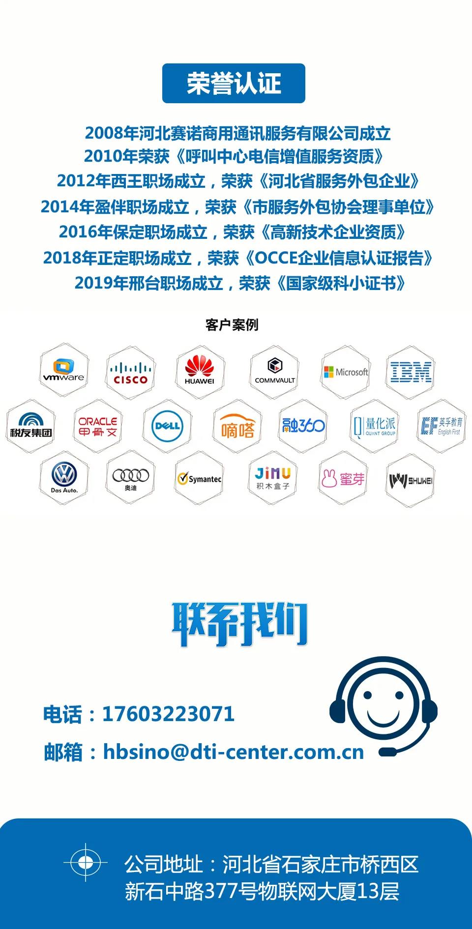 但真正做到誠信經(jīng)營的公司并不多,很多企業(yè)在合作前承諾的高質(zhì)量高指標(biāo),在合作過程中卻很少能做到達(dá)到客服的期望值。作為高效的外包公司不會輕易夸大自己的能力和服務(wù)指標(biāo),會實(shí)事求是為客戶展示自己的能力。河北賽諾堅(jiān)持“誠信、拼搏、高效、共贏”的企業(yè)口號,始終秉承著誠信經(jīng)營的原則。